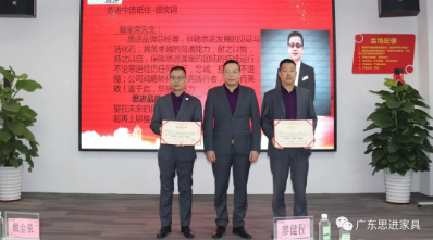 廖董事長作為思進家具戰略定位第一人,從為員工制定個人目標“三年買車、五年買房”到今天的“營銷人員成長晉升層級”,他始終不忘堅持思進核心價值觀:支持員工實現個人價值,員工助推企業持續發展,我們共同承擔社會責任,實現國富民強。最后廖董事長期望思進品牌涌現更多的戰斗力強、忠誠度高的優秀人才,與思進共同成長!