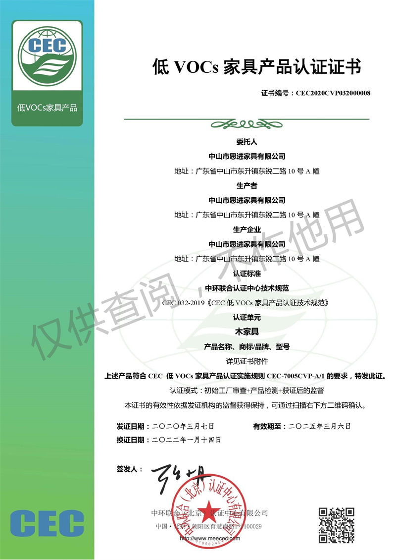 低VOC金屬家具
